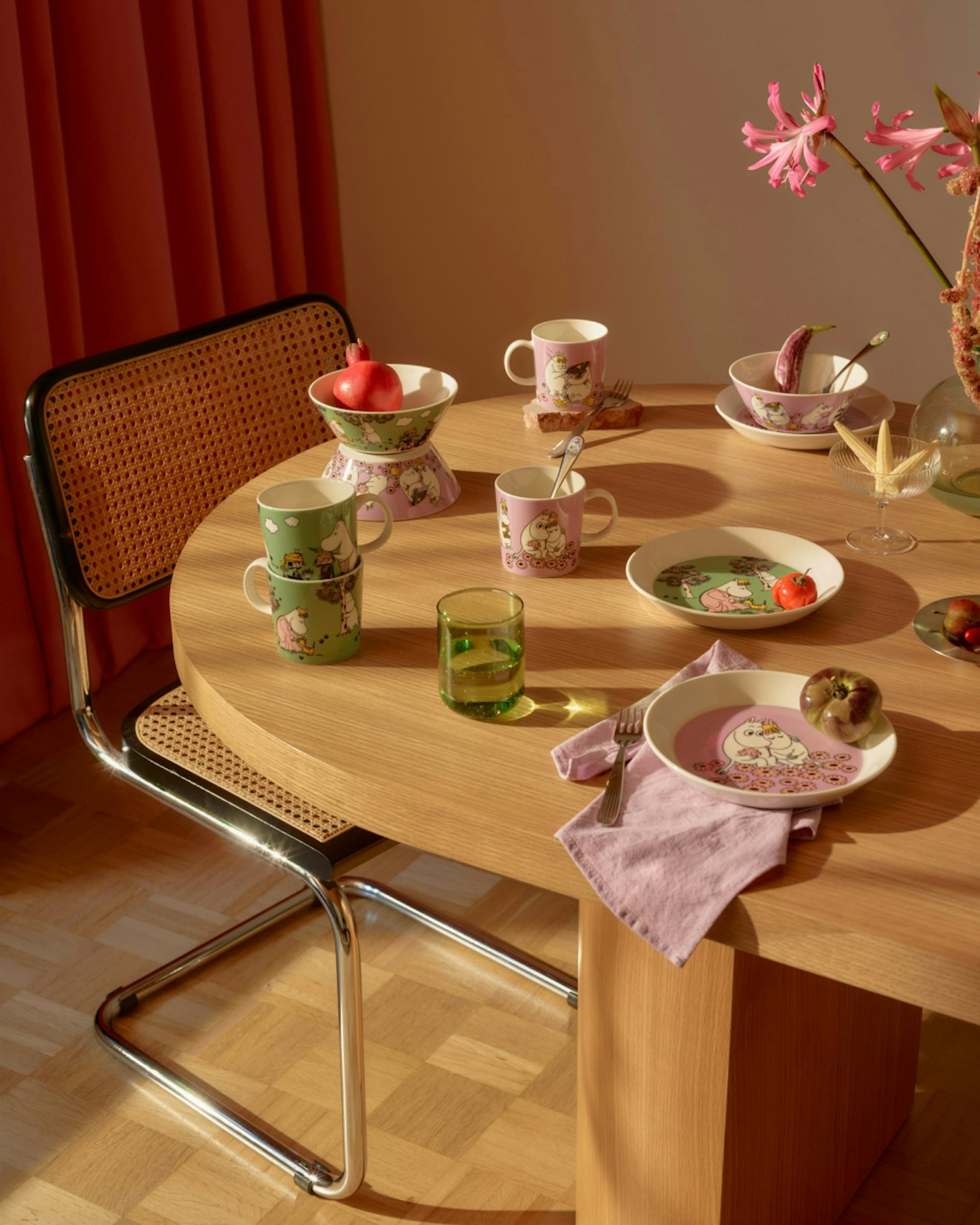 Moomin Arabia combines Tove Jansson’s beloved Moomin characters with high-quality Nordic porcelain design. Each illustration tells a story from Moominvalley, adding a touch of magic to everyday life. The tableware is durable, dishwasher and microwave safe, and cherished by both children and collectors.