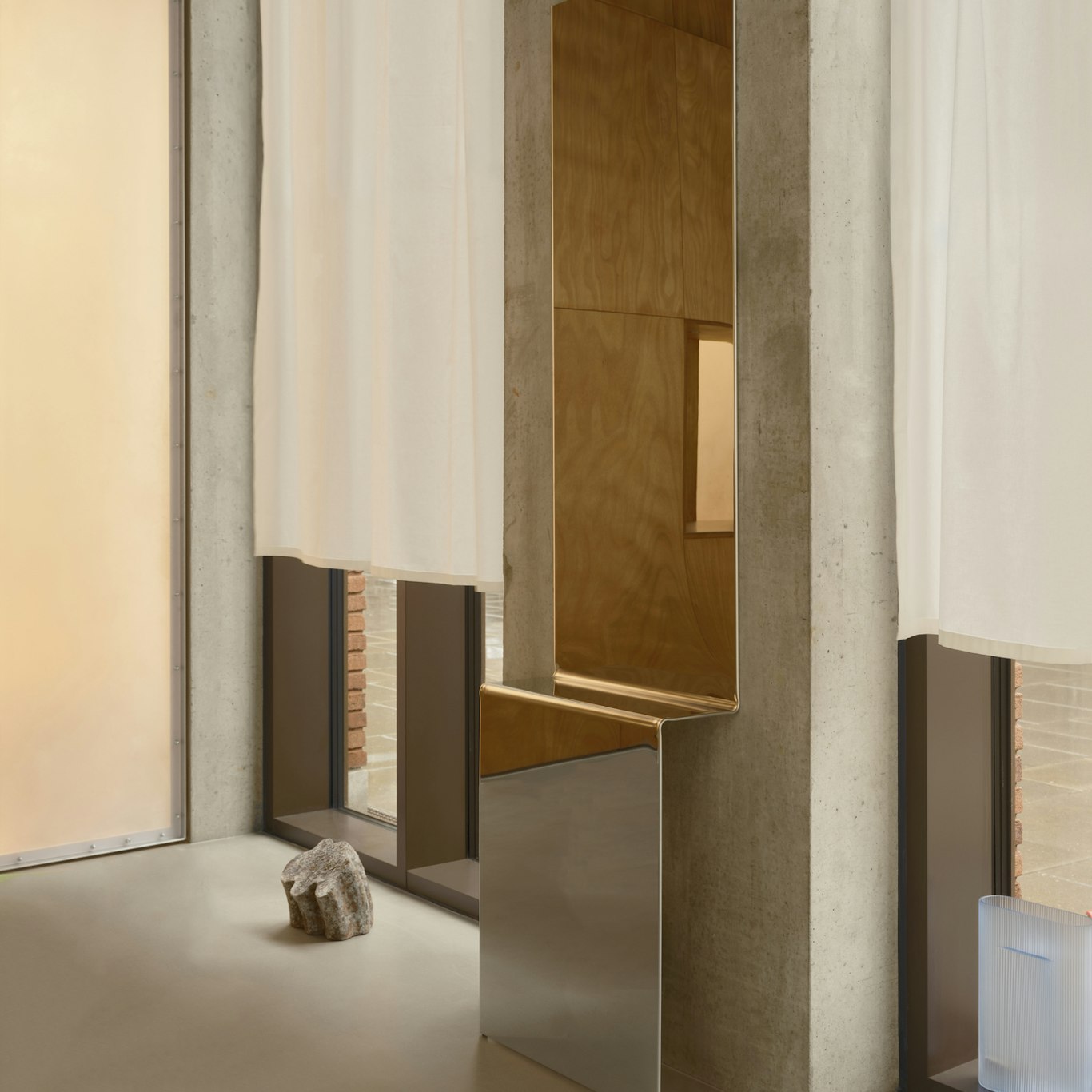 The Pleat Mirror by Muuto reinterprets the full-length mirror as a sculptural statement with architectural presence. Crafted from mirror-polished stainless steel, it reflects the room with a bold, contemporary expression, while the folded form creates depth and movement. Cut from a single sheet of steel and scaled to echo a doorway, Pleat feels almost like a living artwork – minimalist, yet with undeniable presence.