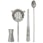 - Four essential bar tools: measuring cup, stirrer, strainer, and ice tongs.