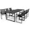Vevi Matgrupp from Brafab is elegant and really comfortable. Thanks to the two frames that the armrests and the frame on the table have, the group gets a minimalist and clean style. The dining set is available in three different designs: white and black made of lacquered aluminum (maintenance-free) and then one made of teak. The seat part of the chair is made of the durable fabric Textilene.